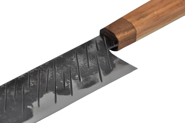 Типично за японските ножове с набита дръжка изработена от дърво.